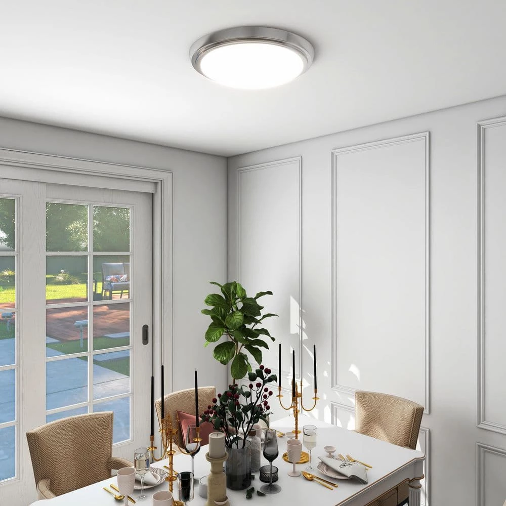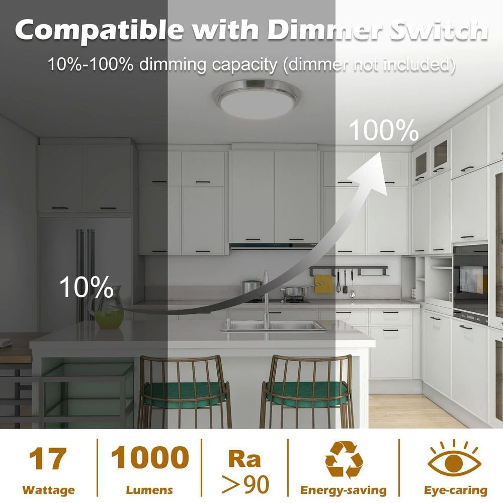 Our LED Flush Mount Light allows you to creat the atmosphere you want with the right LED color temperature, and offers smooth dimming from 10% to 100% to compliment your mood or time of the day. With full and easy-up-follow,step by step instructions included, you can have our lights up and shining bright in on time. our dimmable ceiling light has built in LED chips, which means no additional bulbs are needed. Simply install the fixture and turn it on to brighten up your home or worksapaces.