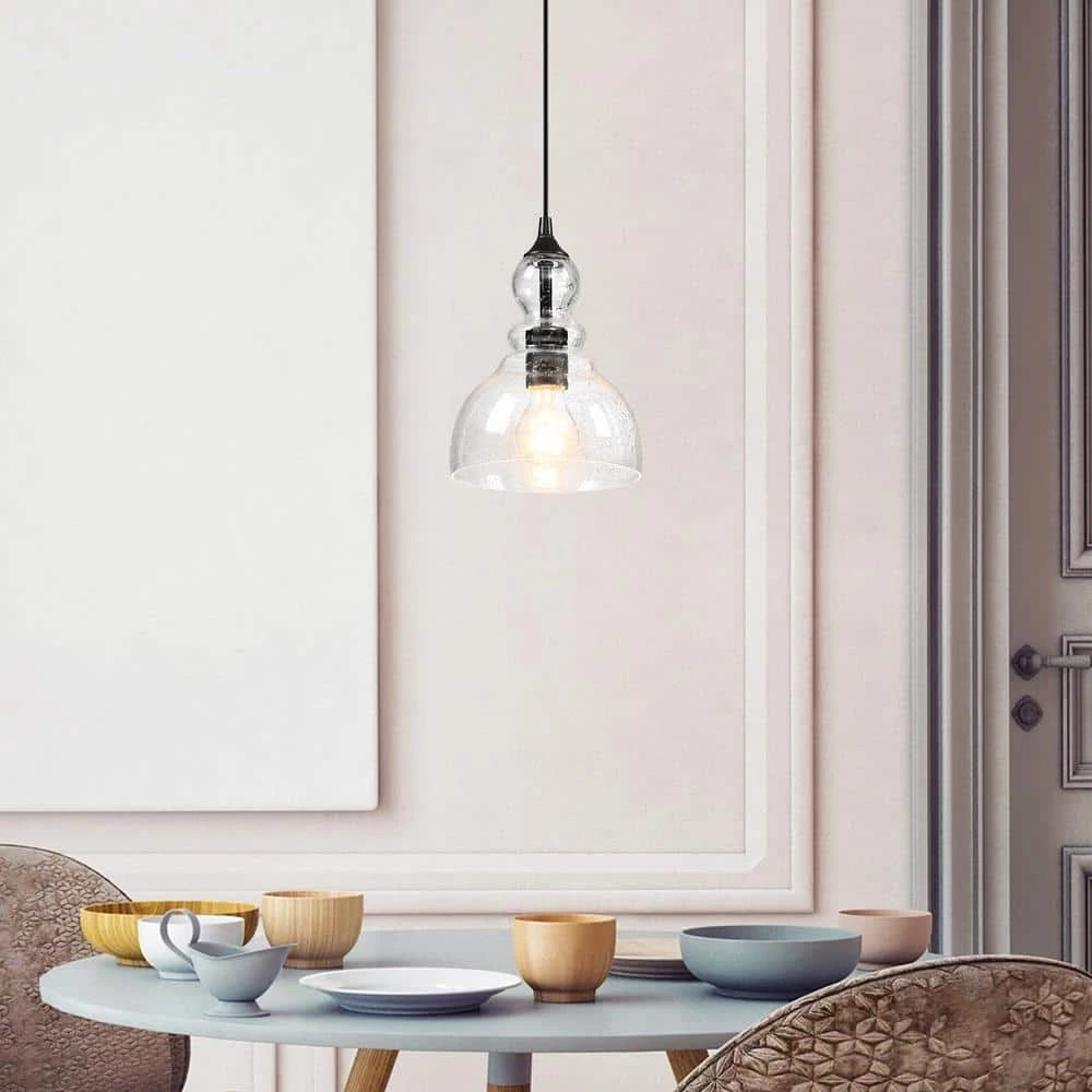 Teardrop pendant is crafted with a fluted glass bell shade and polished nickel-finish hardware for a versatile design that fits right in with the traditional and coastal decor. It’s the key ingredient to any room – that’s why we love this single pendant light. It hangs from a simple wire and canopy with an adjustable height and sloped ceiling adapter, so you can be sure it fits your living room. This 1-light bell pendant gives off plenty of ambient lighting from a 60W standard bulb (sold separately).