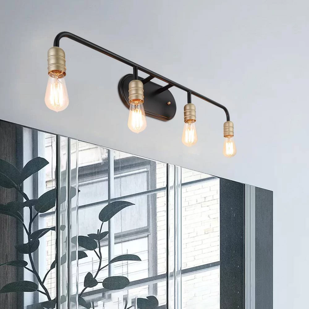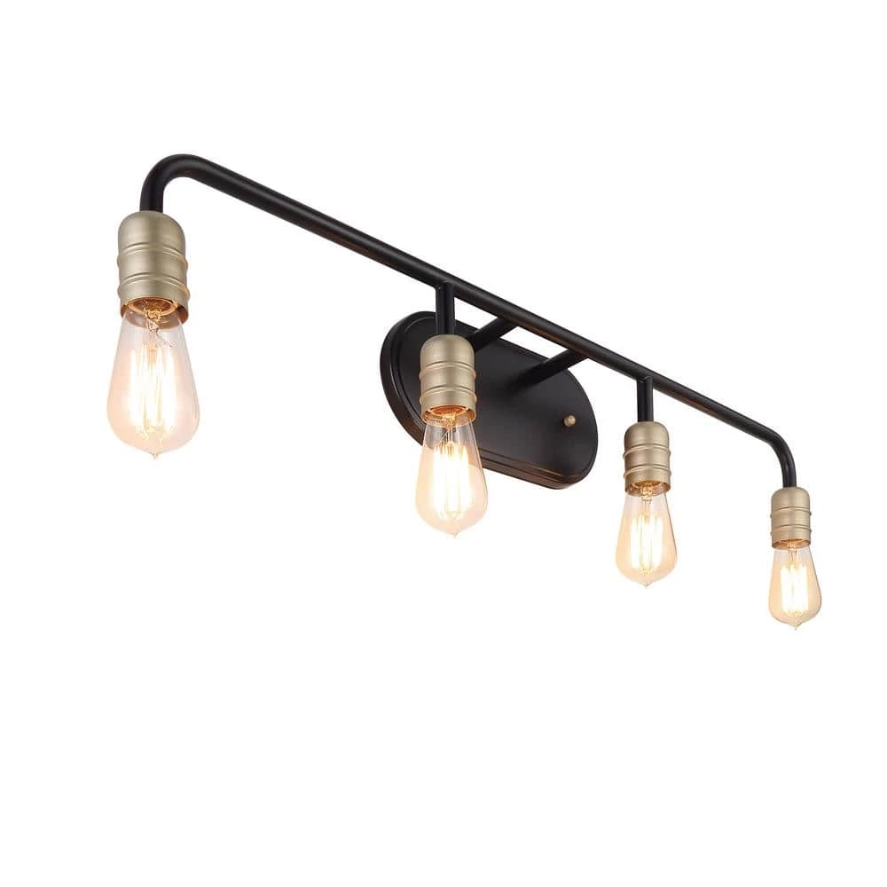 This 32.5 in. W x 5 in. H 4-light vanity light is made of black metal. Streamlined design meets minimalist chic appeal in this stunning 4-Light Vanity Light, this charming luminary will add nostalgic charm to your vintage or industrially inspired bathroom. It showcases an oval-shaped backplate. Its reversible design lets you decide whether to cast a warm glow upward or downward.