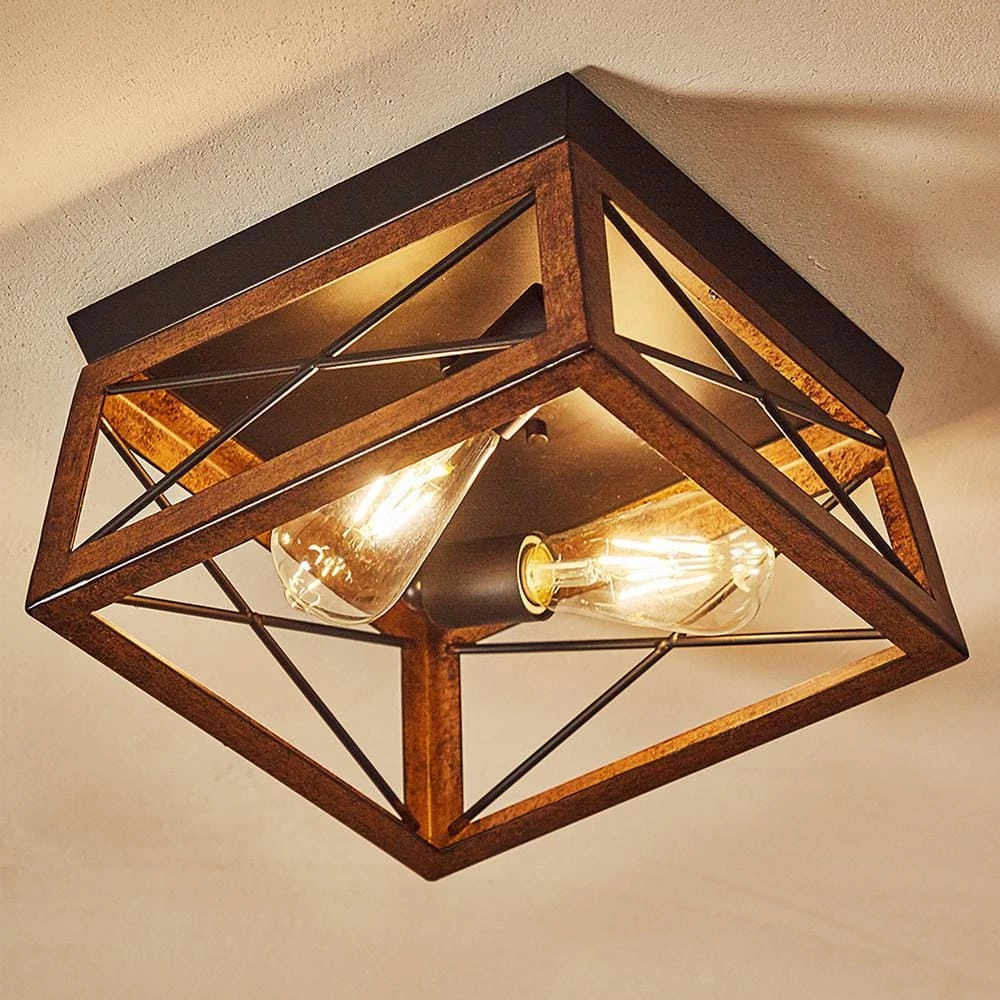 - Farmhouse light fixture design: this square flush mount ceiling light fixture with metal frame, retro industrial style, piano paint process, durable and provide a modern industrial and rustic look, which can reate a cozy and comfortable home atmosphere