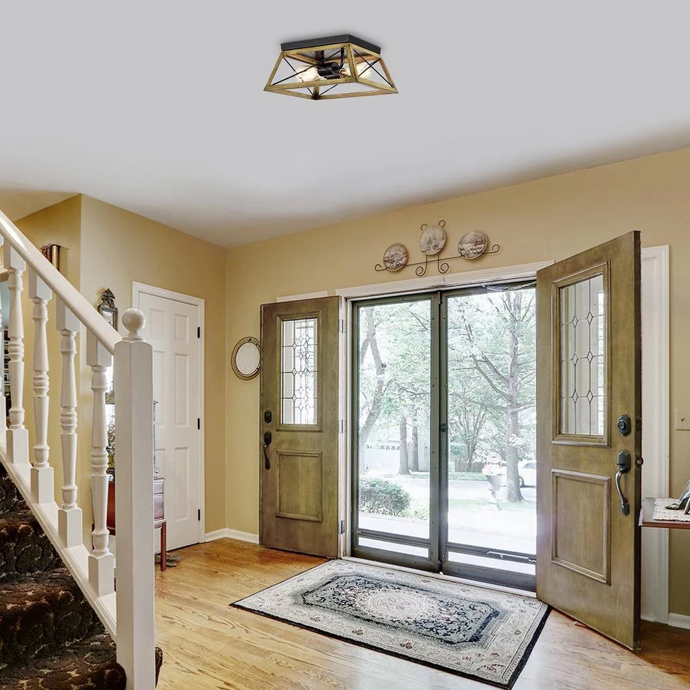 Create a cozy and comfortable home atmosphere with the classic barn-like touch of the this 2-Light Ceiling Fixture. From inside the enclosure peeks light bases waiting to hold light sources as they exude a comforting country glow. The ceiling light’s farmhouse-inspired design is ideal for any hallway, kitchen, sitting room or foyer in coastal, craftsman, farmhouse, rustic, urban industrial and vintage electric interiors.