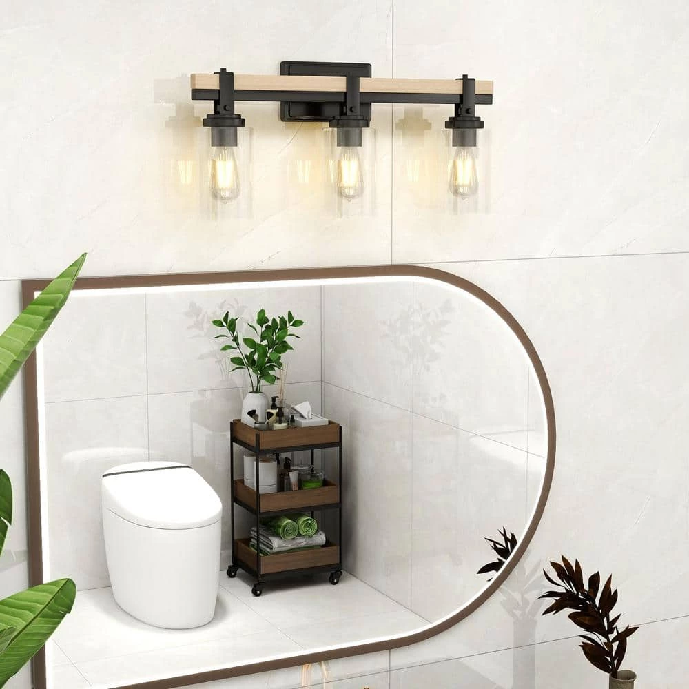 - Modern style: wall vanity light features a matte black finish paired with a clear, seeded glass shade