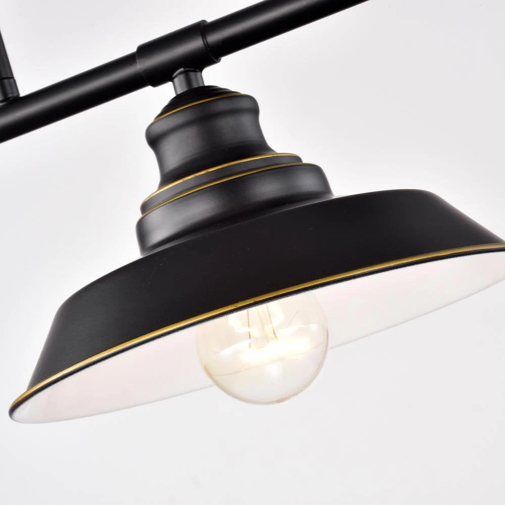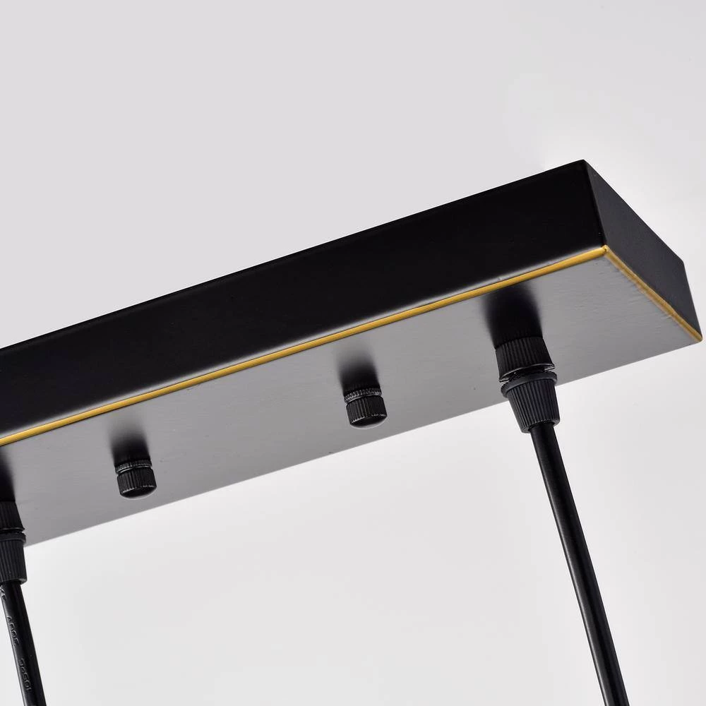 - Unique design: simple linear chandelier, especially designed to illuminate kitchens, dining room, restaurants or industrial style places, the design uses a black frame made of metallic paint and the 3 bowl-shaped lampshades adopt a brushed matte black with golden trim and white inside, simple, stylish and retro