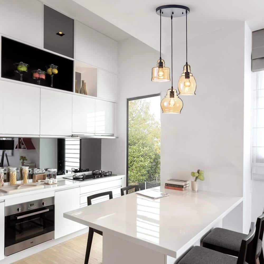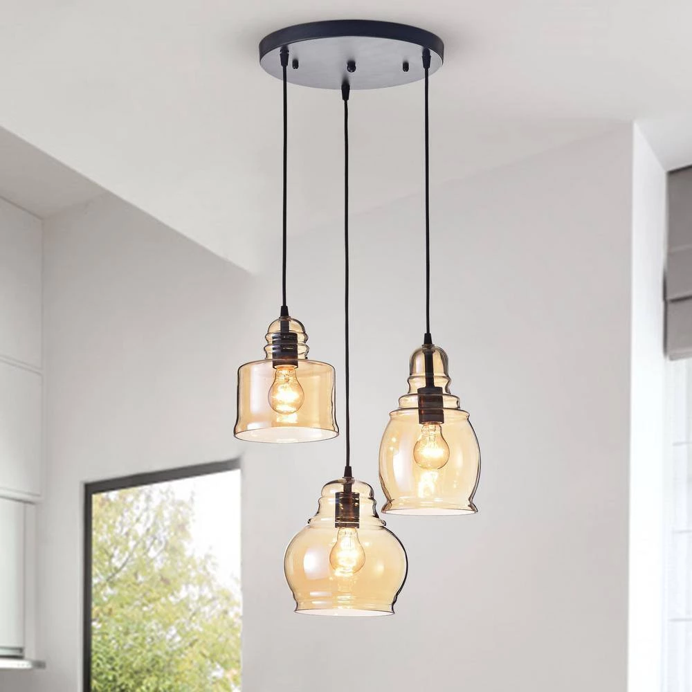 This Contemporary Chandelier comes in a Black and Brown finish with Amber glass. This 20 in. light brings a modern appearance with constructed clean lines to complement the decor in any room of your home. It would be a perfect choice.