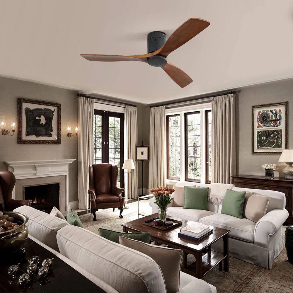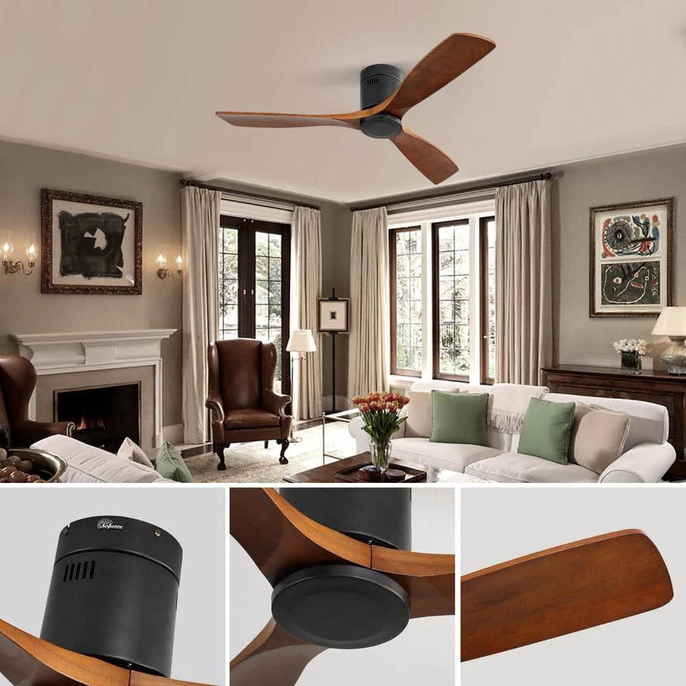 - Flush mount ceiling fan blades: 3 outdoor approved dark walnut blades