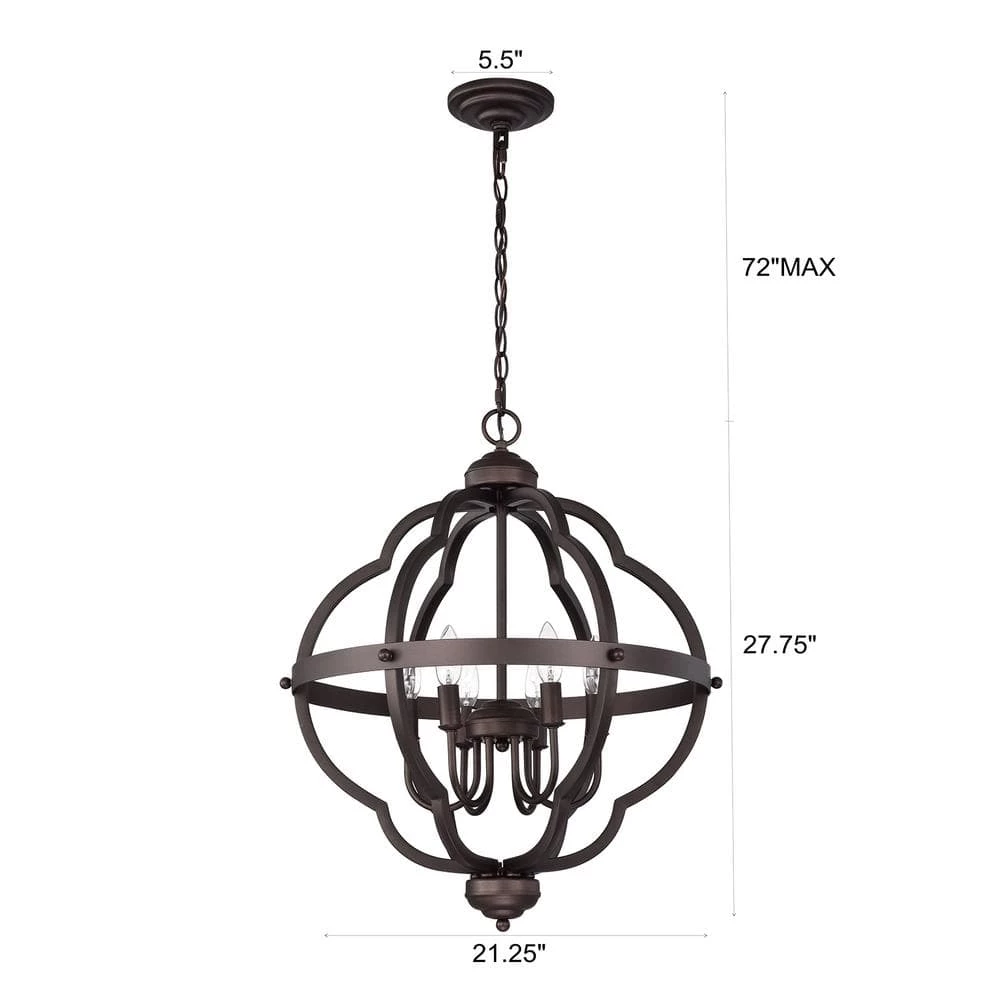 Vintage-industrial style radiates from the open sphere design of the 6-light Pendant. Encircling an oil rubbed bronze candelabra with 6 twinkling lights. This indoor chandelier’s dramatic size commands attention in an entryway, over a dining room table or kitchen island. it will also complement open concept kitchens and living areas in industrial, traditional and Rustic style homes.