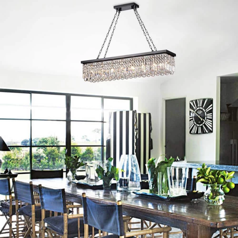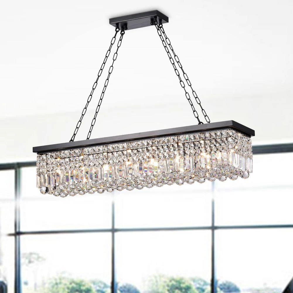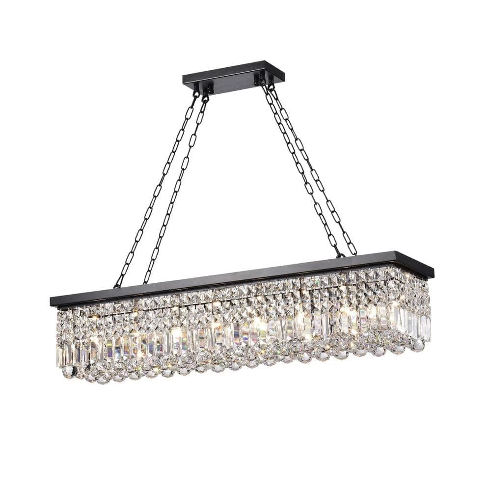 This Contemporary Chandelier comes in a Black and Brown finish with clear glass. This 39.4 in. Chandelier brings a modern appearance with constructed clean lines to complement the decor in any room of your home. It would be a perfect choice.