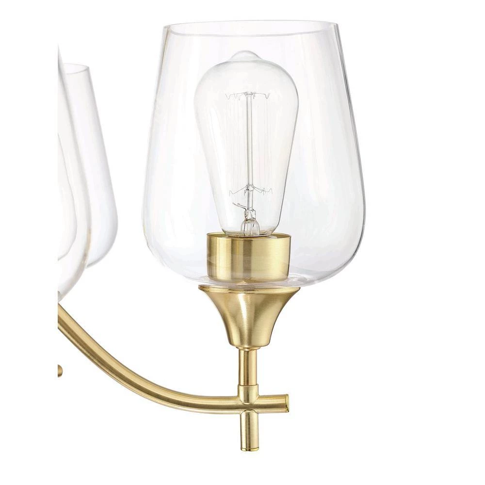 Beyond brightening your home, chandeliers make a statement in any room without occupying valuable floor space. It showcases a curved metal frame with sleek arms for a hint of contemporary design, and a neutral finish that works well with any color palette. 5 clear glass shades at the end of each arm accommodate. Perfect For Use In Dining Rooms, Living Rooms, Great Rooms, Bedrooms, Kitchens, Foyers, Offices, Closets And Even Bathrooms.