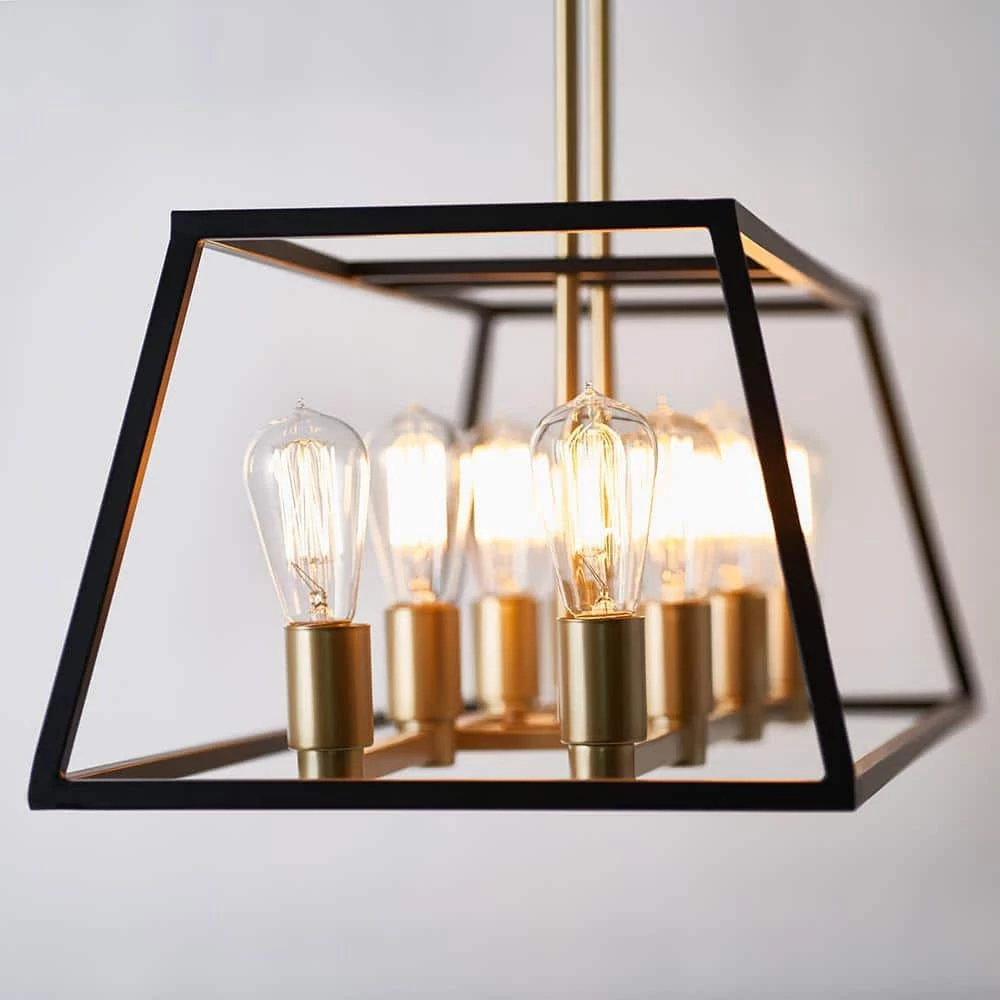 Give yourself the best of both worlds with Artika’s Carter 8 light geometric industrial chandelier. The intelligent conception of this chandelier combines a minimalistic and industrial design with a glamorous and classic appeal. This large rectangular industrial chandelier features aesthetic angles and skillfully pairs with various contemporary interiors. The Carter industrial chandelier also allows you to deftly integrate the black matte finish and the brass accents of its steel frame with its incandescent lights. This exceptional lighting fixture can adapt to any atmosphere. Treat yourself to this versatile model and see how quickly it becomes a centerpiece within your home.
