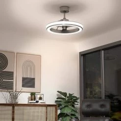 Edwin 25 in. Integrated LED Indoor Brushed Nickel Ceiling Fan with Light with Remote by Artika