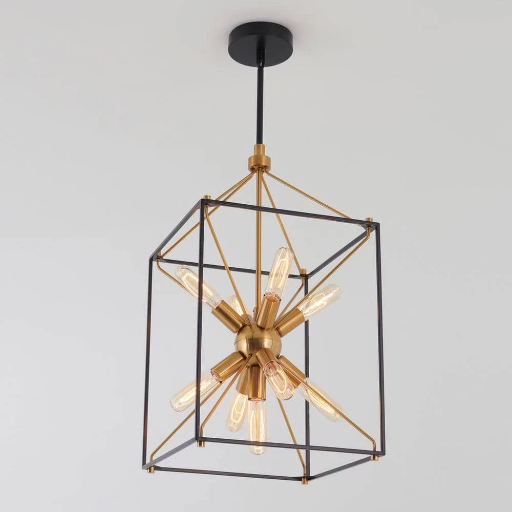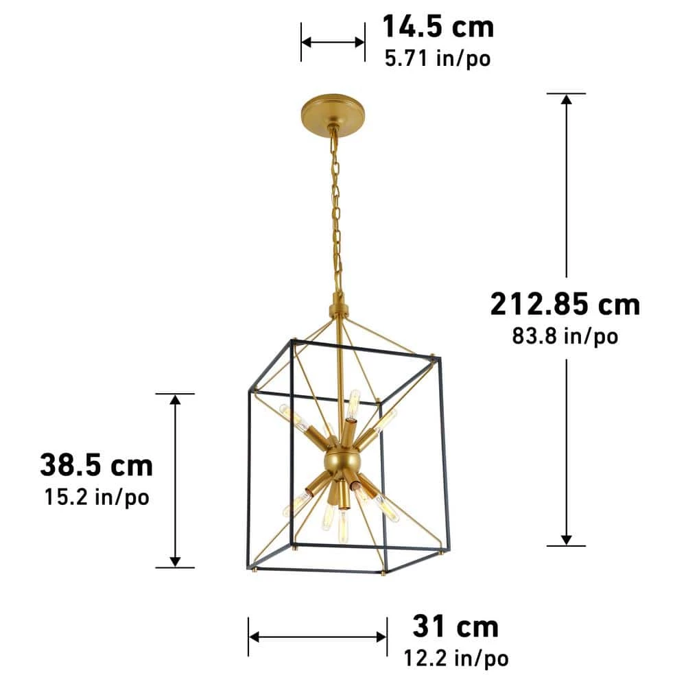 Electrify your home with Artika’s artistic and beautifully heterogeneous Clyde 9 light industrial hanging chandelier. This modern chandelier features 9 retro futuristic incandescent bulbs and expert mix of brass finish steel and metal can attest to that fact. It’s obvious that the Clyde Chandelier isn’t meant to go unnoticed as its mere presence in a room delivers a big impact. Despite its very special appearance, this golden chandelier enhanced with a black frame is capable of pairing seamlessly with your reality. In fact, its adjustable rods allows you to integrate it into various spaces. Energize your interior decor with this incomparable model.