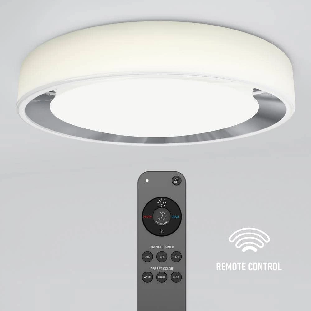 On the hunt for a discreet, streamlined luminaire for your entrance hall, living room, or bedroom With its white, chrome-accented finish, the Cooper LED ceiling light is both sophisticated and functional. A remote control lets you select from 3 brightness and warmth options as well as a nightlight function. Cooper has a lifespan of 50,000-hours and offers 1,400 Lumens. Installation is easy, and all hardware is provided, including batteries for the remote control.