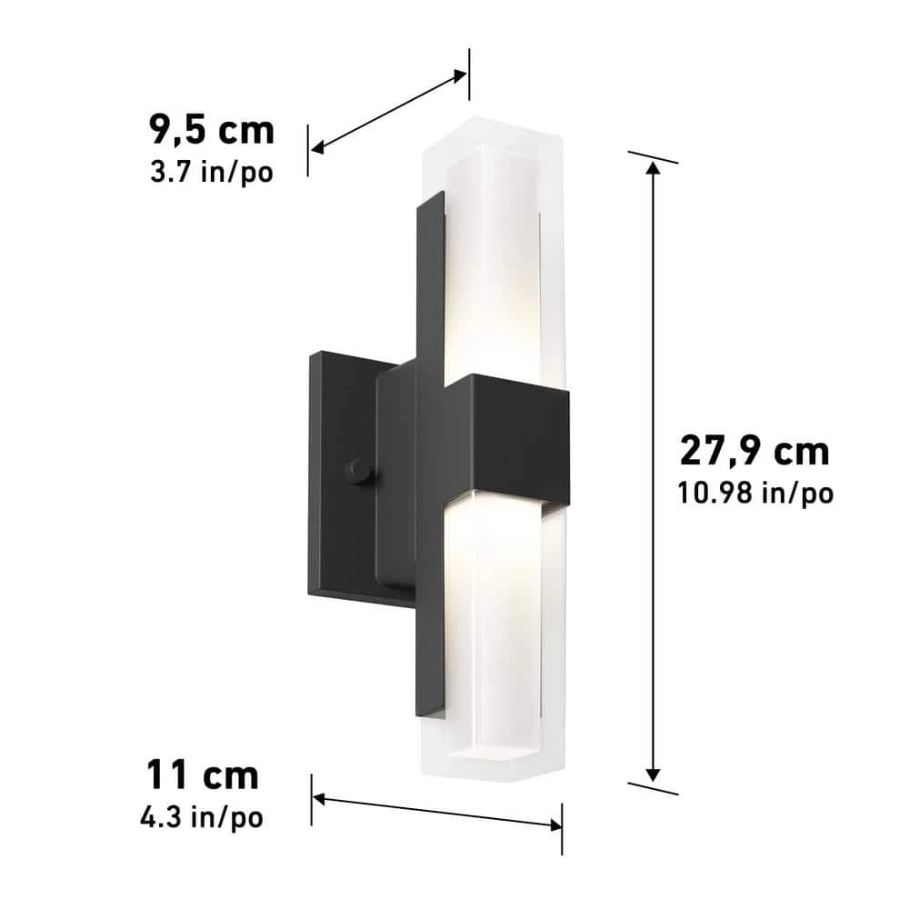 With its contemporary design, the Gemini matte black LED wall sconce elevates the appeal of your front entrance or fireplace. Installed either indoors or outdoors and withstanding temperatures ranging from minus 18°C to plus 40°C, this luminaire remains resilient year-round. With its 3 adjustable color temperature presets ranging from warm to cool, the design graces you with 700 Lumens for 50,000-hours and thanks to its included hardware, it’s quick and easy to install.