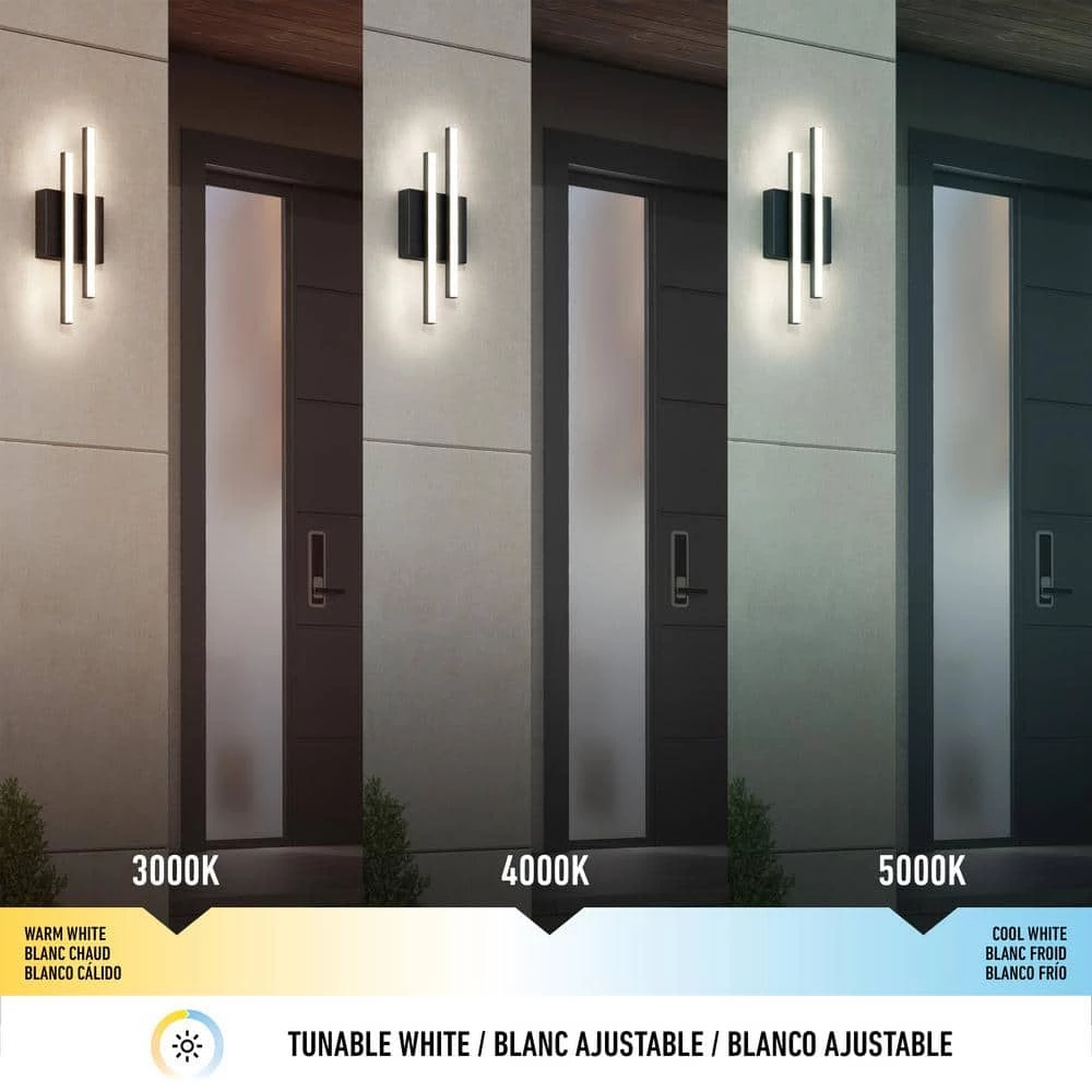 An LED wall sconce with a luxurious, minimalist design, Grid illuminates everywhere from your living room to your front porch. Weather-resistant and designed with adjustable color-temperature technology ranging from warm white to cool white, this matte black luminaire accommodates all settings any time of day, its integrated LEDs are compatible with most LED dimmers and diffuse 600 Lumens at 14-Watt for 50,000-hours. Installation is easy and all necessary hardware is included.