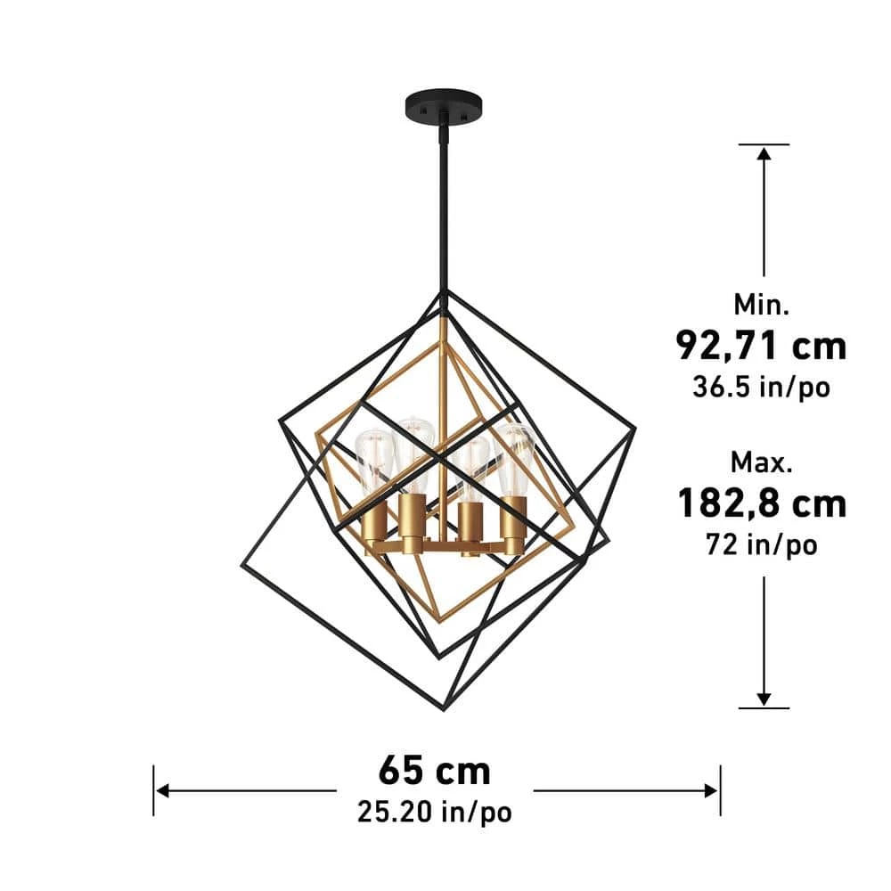 Electrify your home with an artistic and beautifully heterogeneous Pendant. With its industrial-inspired design, the Harmonium is a lighting fixture that gets the job done. Its retro futuristic look, 4 incandescent bulbs and expert mix of brass finish steel and metal can attest to that fact. It’s obvious that the Harmonium isn’t meant to go unnoticed as its mere presence in a room delivers a big impact. Despite its very special appearance, this golden pendant enhanced with a black frame is capable of pairing seamlessly with your reality. In fact, its adjustable rods allows you to integrate it into various spaces. Energize your interior decor with this incomparable model.