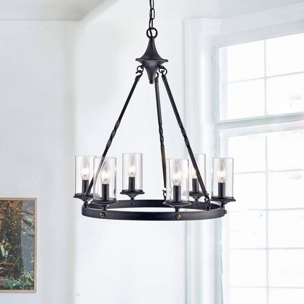 This Contemporary Chandelier comes in a Black and Brown finish with Amber glass. This 20.1 in. light brings a modern appearance with constructed clean lines to complement the decor in any room of your home. It would be a perfect choice.