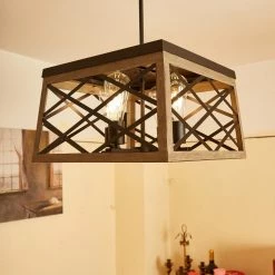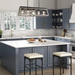 5-Light Kitchen Island Anchor Grey Oak and Matte Black Cage Pendant Light by Pia Ricco