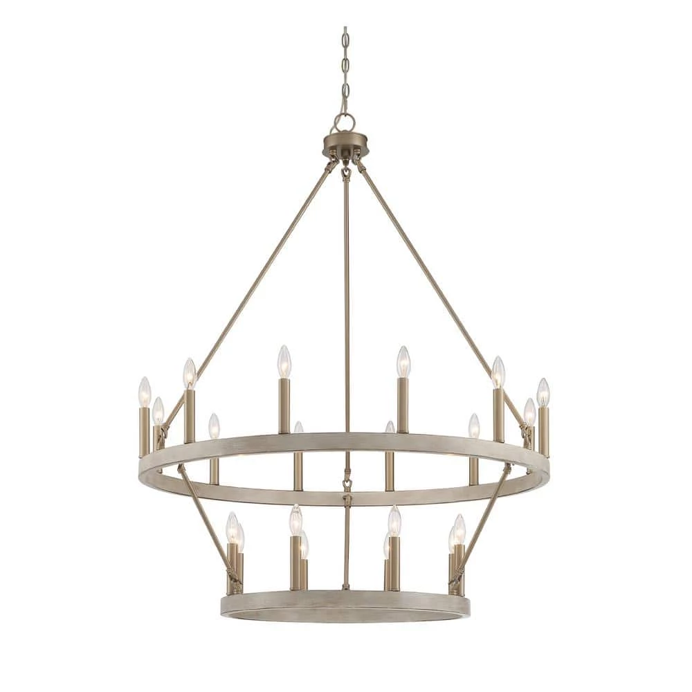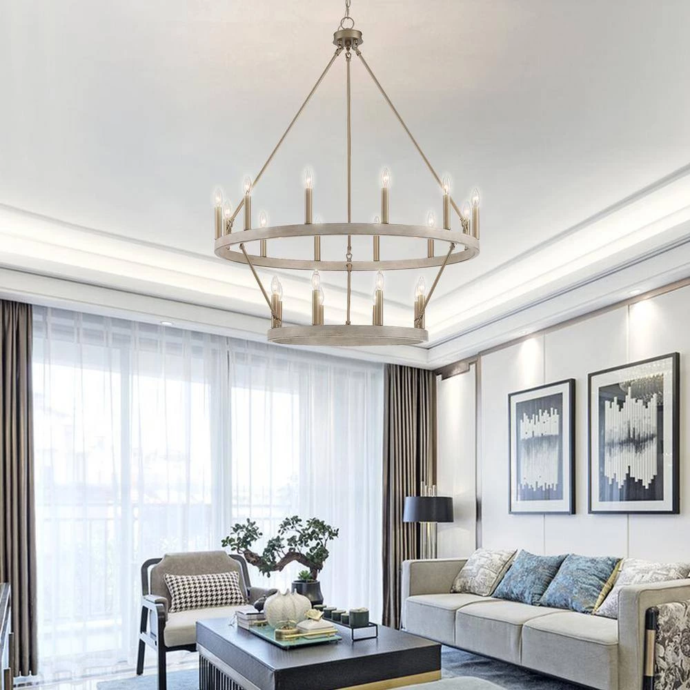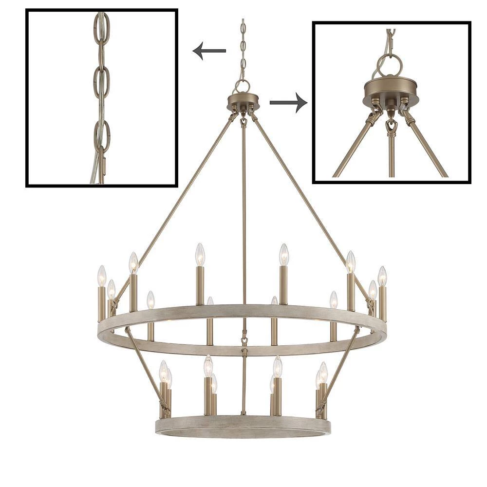 This industrial-style double-layer 20-light chandelier with a oak main body and golden tubes will make your decoration more layered and not look monotonous. It is suitable for various styles of decoration. It has a 90 in. adjustable chain, you can easily install the light to the height you like. This chandelier will be what you want.