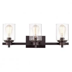 3-Light Oil Rubbed Bronze Contemporary Bathroom Vanity-Light with Clear Glass by Jushua